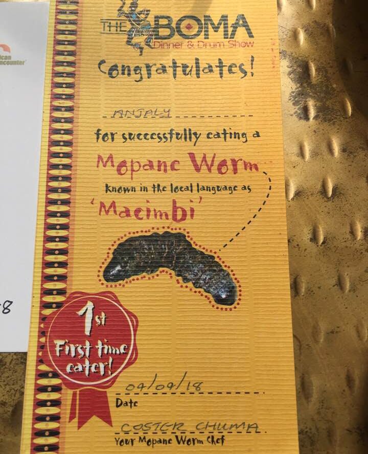 New experiences, like eating mopane worms make for great stories.